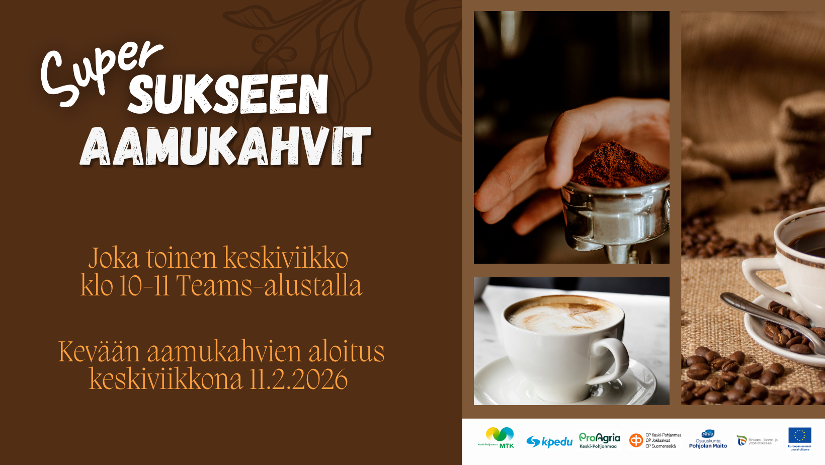 Menneiden aamukahvien tallenteet löytyvät SuperSukseen materiaalipankista. Syksyn 2025 aamukahvien aiheina oli: